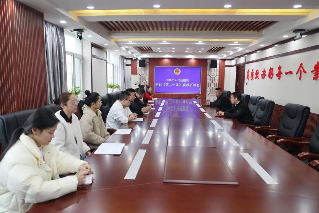 2月20日下午,北镇市人民检察院组织干警观看了近期热播电影《第二十条》,影片中三个类似案件共同展开,以此来切入《中华人民共和国刑法》第二十条“正当防卫”真正的价值。