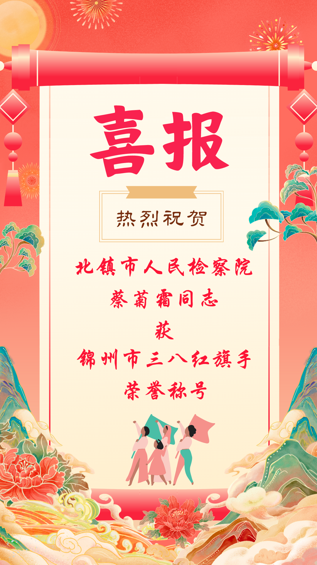 【喜报】北镇检察院蔡菊霜同志获锦州市三八红旗手荣誉称号!
