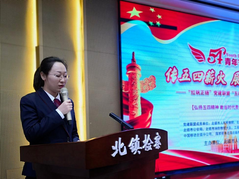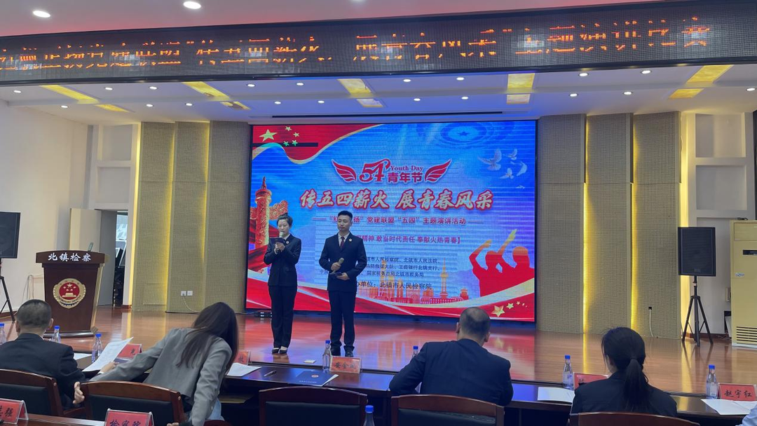今年是新中国成立75周年,也是纪念“五四”运动105周年。为深入学习贯彻党的二十大精神和习近平总书记关于青年工作的重要思想,进一步继承和发扬五四精神,激励动员广大青年干部坚定不移听党话、跟党走,全面展现新时代北镇青年昂扬向上、奋发进取的精神风貌。4月29日,北镇市“红帆正扬”党建联盟联合举办“传五四薪火,展青春风采”演讲比赛,本次活动由北镇市人民检察院主办。